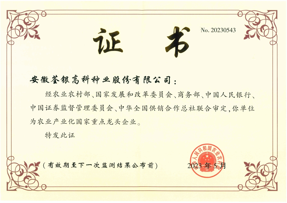 安徽荃銀高科種業(yè)股份有限公司是一家“以種業(yè)為核心、農(nóng)業(yè)服務為延伸、探索和創(chuàng)新農(nóng)業(yè)多元化發(fā)展”的現(xiàn)代高科技種業(yè)上市公司,證券代碼:300087。公司注冊資金9.47億元,系“中國種業(yè)領(lǐng)軍企業(yè)、農(nóng)業(yè)產(chǎn)業(yè)化國家重點龍頭企業(yè)、國家高新技術(shù)企業(yè)、農(nóng)業(yè)部首批農(nóng)作物種子育繁推一體化企業(yè)、中國種業(yè)信用明星企業(yè)"。在國內(nèi)控股子公司20多家,在國外設立分支機構(gòu)4家,良種銷售至全國20多個省(市、區(qū)),出口覆蓋20多個國家與地區(qū),種業(yè)綜合實力、雜交水稻研發(fā)、推廣及海外業(yè)務規(guī)模均居全國種子企業(yè)前2位。